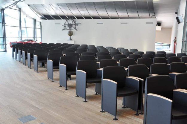 Chaise de conférence innovant tout en conservant un maximum de confort réduit l’espace global de moins de vingt-deux centimètres (sans comprimé). Tout cela est rendu possible par le système de manutention de retour » reculer » qui suit le mouvement naturel de l’arrière.